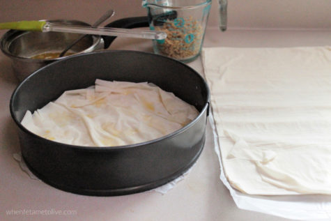 Once your syrup has cooled down, you can start on the baklava.